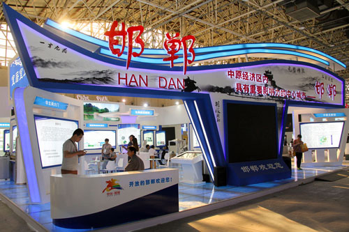邯鄲館在眾多展館中,可謂“顏值”超高,無論場館建設還是展示內容都極其豐富。邯鄲作為中華文明的重要發(fā)祥地之一,具有非常深遠的歷史。從邯鄲館外部可以看出,一言九鼎,完璧歸趙,都像在訴說邯鄲的歷史與文化。今年518洽談會,邯鄲主打“中原經濟區(qū)內具有重要影響力的中心城市”從多個方面令世界了解邯鄲,走進邯鄲。